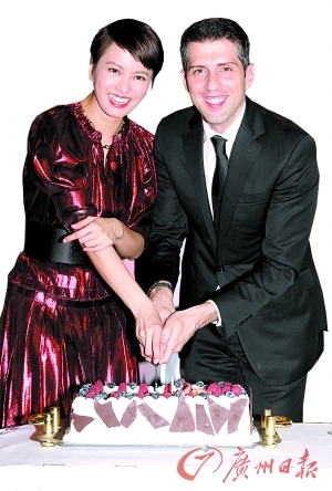 洋老公与梁咏琪一起切蛋糕庆生