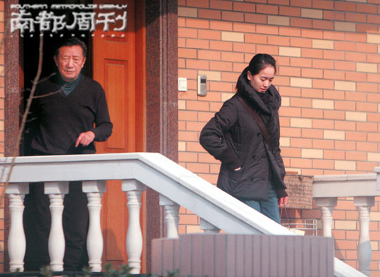 在下午1:50左右,左小青又走出了孙红雷家,这次她换上了一件黑色的羽绒服,而开门送左小青的是一位70岁左右的老者,孙红雷与这位老者长得很像,尤其是两人都有一双“眯缝眼”,记者猜测这位老者可能就是孙红雷的父亲,而如果他真是孙红雷的父亲,出门去送左小青,左小青与儿子的关系已经不言自明。左小青正要启车离去时,孙红雷的身影又出现在二楼房间的窗户前,他默默地目送左小青离去,这时的孙红雷似乎显示出硬汉柔情的一面。通过连续两天的调查和观察,记者发现孙红雷乃是左小青“新欢”的消息并非全无来由,两人的恋情已逐渐明朗化。