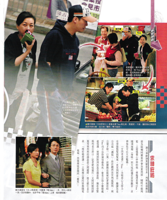 14日下午,谢天华与Tina以模范夫妻姿态在跑马地寓所附近出现,他们先到茶餐厅吃饭,然后去菜场买菜。谢天华表现出一副住家好男人的样子,帮忙挑肉、买菜,然后与Tina回家。