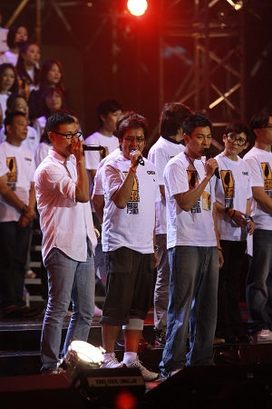 昨晚赈灾晚会由张国立、庾澄庆、陈百祥、张艾嘉、吴君如、陈芷菁、鲍起静、吴小莉等担任主持人。而晚会最引人瞩目的是香港“四大天王”刘德华、张学友、黎明以及郭富城的聚首同台,这也是四人继2007年香港回归10周年纪念演出后再次同台,其中原定将于下月赴台湾与歌迷庆生的刘德华,更号召台湾歌迷取消行程捐出旅费。此外,“大哥”成龙虽然不在香港,但将负担此次晚会所有开支,为台湾灾民尽心力,晚会上成龙也通过VCR表达自己对灾区的支持。而著名影视大亨、慈善家邵逸夫托妻子方逸华女士抵达晚会现场,当场献上1亿新台币支票(折合人民币约2000万元)。