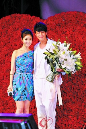当晚闻风而至的歌迷将偌大的广场挤得水泄不通。一袭白色礼服,一双鲜红美履,何润东站在由数万枝红玫瑰编织的巨大红心前旋转而出,现场玫瑰花雨使气氛浪漫至极。