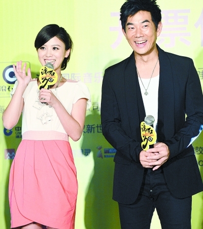 任贤齐和卓文萱为武汉演唱会开票仪式助阵