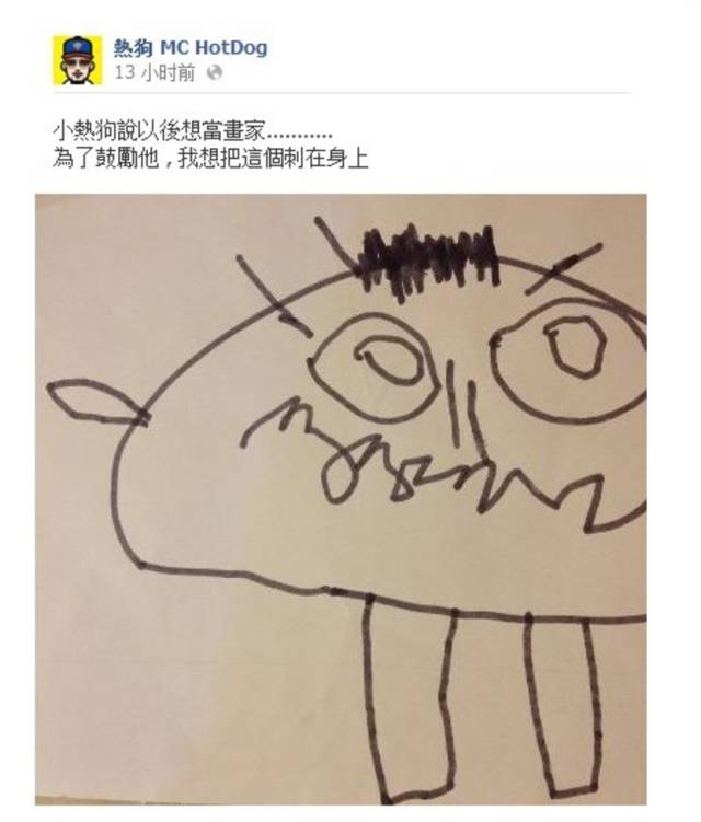 FB上还曾表露过想把儿子做的画做成纹身,啧啧,小编默默心疼纹身师1秒钟。