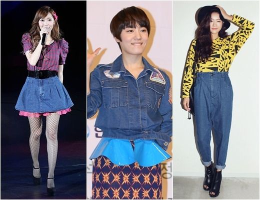 巧妙活用这一风格的Jessica在牛仔裙上搭配粉蓝格纹衬衫完成了可爱灵力的形象。此外,刘孝英在牛仔夹克上搭配格纹裙,并以Peplum腰封装饰打造了独特的魅力。
