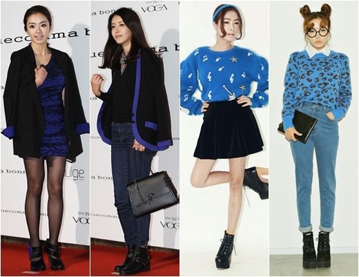 韩情脉脉:Jessica等巧搭蓝色单品示范冬装