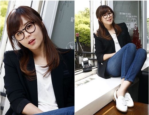 若想以眼镜搭出如同崔江熙的时尚衣装,就请巧搭舒适休闲小西服和修身裤吧!如果选择可以修饰身材曲线的款式即能打造可爱不失知性美的风格。
