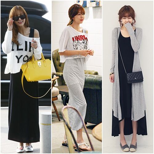 下面,解析一下韩国女明星们如何巧搭长裙单品!