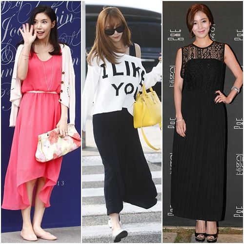 目前时尚界推出的长裙款式和材质变得更加丰富多样。很多韩国女明星们在出席活动时,以不同风格的长裙装扮展现出舒适且不失时尚感的抢眼范儿。