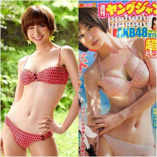 篠田麻里子曾被指在夜店工作,经常陪人喝酒,不管是夜店时期被曝光的照片,还是加入AKB48后拍摄的写真,篠田麻里子的身材始终是普普通通,不过《周刊YOUNG JUMP》杂志封面上的她却十分惊艳。