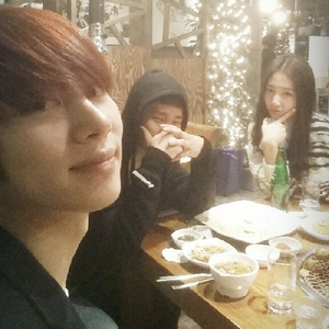 从左至右,Super Junior成员金希澈、INFINITE成员圣圭和朴信惠