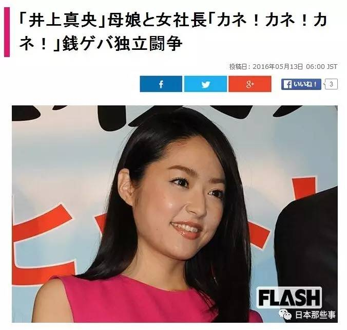 去年6月,《周刊flash》报道了井上真央将与事务所解约的消息。报道称mao想和事务所解约的一大原因是薪资问题,据悉事务所一年付给井上2000万日元,出演CM时会增加提成,一年收入4000万(约合人民币240万)的情况也是有的。