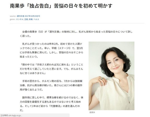 只是细看南果步的专访内容,主要是在叙述她发现罹患乳癌以来一年半的心路历程,以及接受抗癌疗程的种种感想。整篇访问一字未提渡边谦,也完全没聊被他偷吃背叛。不过之前南果步公开自白,她除了癌症之外,身心也曾溃堤,并有失眠困扰。ETtoday/文