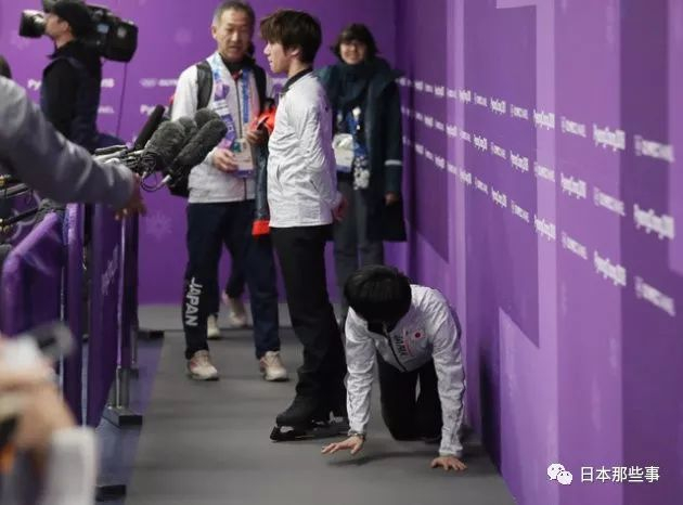 (为了不打扰后辈接受采访而爬过媒体区)