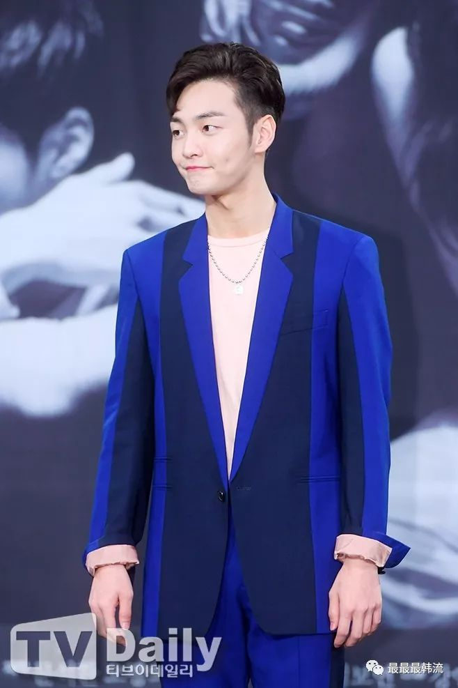 金旻载的活动look也非常亮眼,选了一身黑色和蓝色的拼接西装。