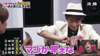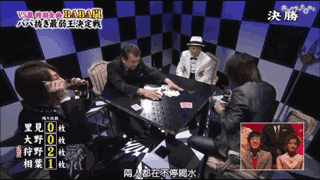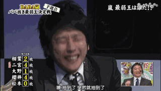 但是毕竟是多年来的队友,大野智的小动作完全被另外两位看透。观战的樱井翔也在演播厅解说,说大野鼻子一动就是拿到鬼牌的信号。