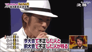 之后的大野在第四次的种子战中努力隐藏起鼻子的动作,可是因为盯鬼牌盯得太紧被樱井看出了鬼牌的位置,又一次留到最后。