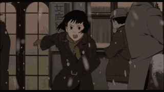 电影、动画也是一样。比如《千年女优》里这段经典的奔跑镜头,剪辑真的太厉害: