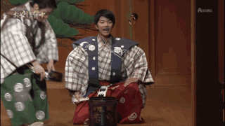 现在的万斋维持着一年300场狂言演出的频率。有多辛苦呢?狂言中不乏这样跳跃的动作,即便蹲下也要维持挺拔的体态,还要一直唱词: