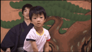 裕基三岁时演小猴子出道。那时,有一幕是野村万斋摸着小猴子的头,向它透露它的命运。