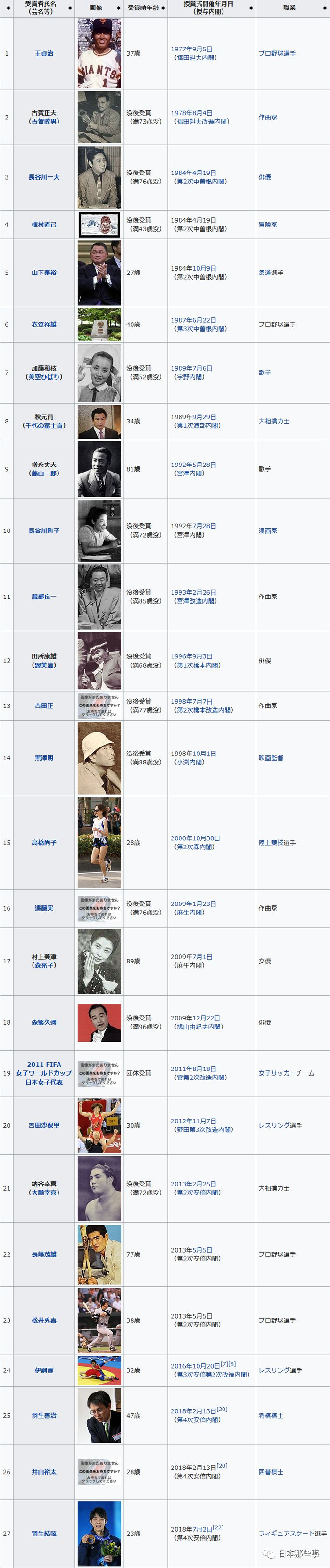 日本国民荣誉奖创设于1977年,羽生结弦是第27位获奖者。他是以个人名义获得此殊荣的人中最年少的一位,同时,在花滑届和冬奥会金牌获得者中也是首位获奖者。