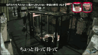 就在最后一个人被释放,大家以为节目结束了的时候,之前被呼叫过的酒井健太来了,他完全以为等待救援的前辈还在。完全搞不清楚状况的他,看着空空的铁笼纳闷时,两个面罩男子突然冲出来将他拖走押上车。。。。。。第一部完。