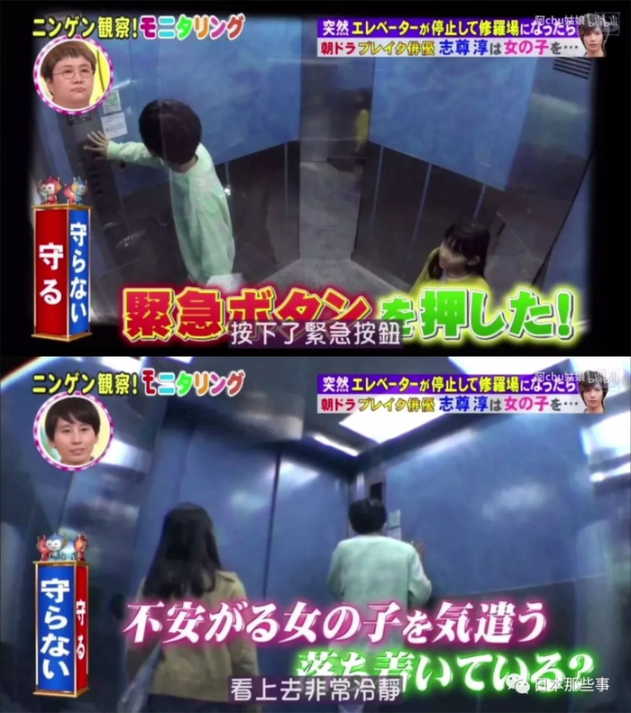 就拿前文提到的《人间观察》来说,JUN被工作人员以“有采访”为理由“忽悠”进电梯,然后通过监控录像来观察他在电梯突然停止后会作何反应。同行的还有一位做托儿的小女孩。