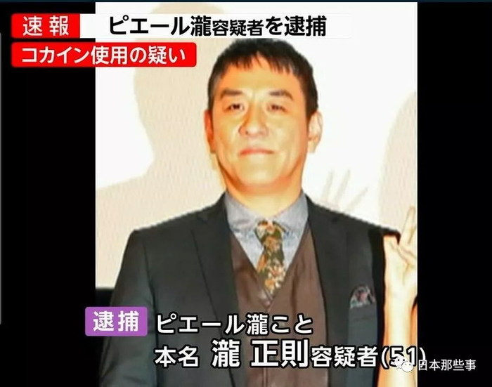演员、音乐人皮埃尔泷因吸食可卡因,3月12日晚被东京警方以违反日本麻药取缔法逮捕。