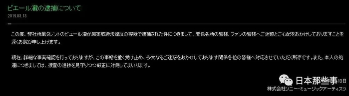 有相关从业人员表示,皮埃尔泷这次的吸毒事件造成的损失总计应该有100亿日元!