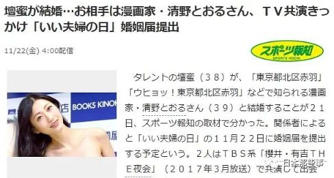 上周五日本娱乐圈的一大喜事就是坛蜜宣布了与漫画家清野通的婚讯。