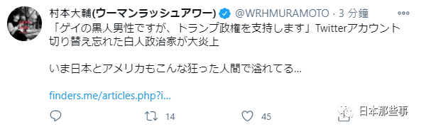 但是虽然消失在屏幕里,在网上也依然爱蹦跶,经常去发表一些政治上的言论跟观点,不管是日本政治还是美国政治,都要被他嘴一嘴。