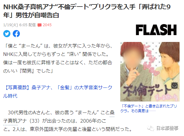 然而1月20日早上《FLASH》杂志发了一篇报道,桑子真帆的一位前“男友”出来爆料她当年居然是个海王!?