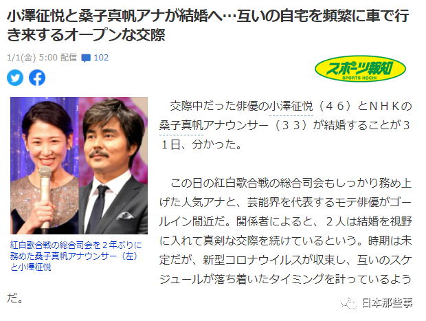 今年一月初,桑子真帆还跟演员小泽征悦被传即将结婚,