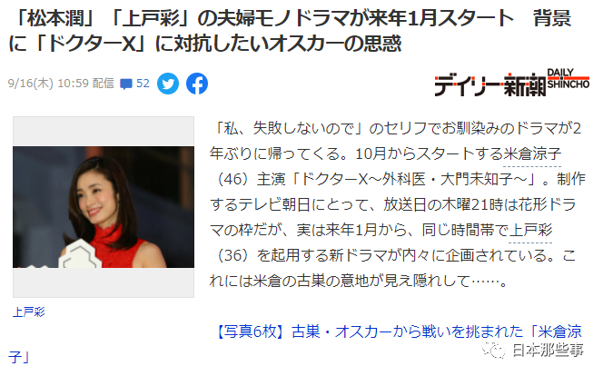 于是奥斯卡不服气了,决定要在同一个档期跟米仓凉子“宣战”,所以找来了目前事务所里面最大咖的上户彩,势必要把上户彩的新剧也捧成能和《大门》对抗的看板剧。