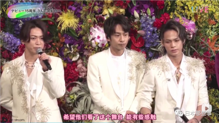 但15年过去以后,舞台上的KAT-TUN只剩下了3个人,前后有3个人离开了组合,多少让人有点感慨。