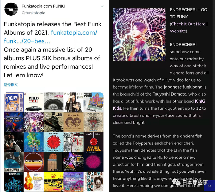 堂本刚的最新专辑《GO TO FUNK》还被美国的FUNK专门网站Funkatopia评选为“2021年最杰出的20张FUNK专辑”之一。