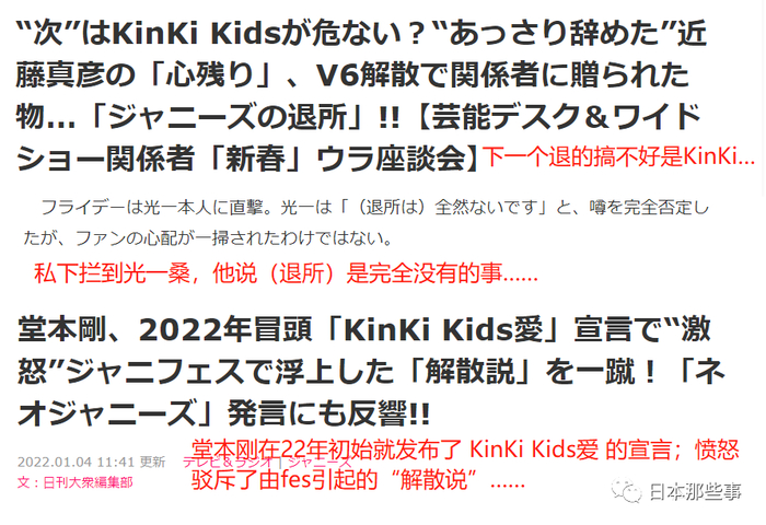 说起来,KinKi Kids最近几年,真的是安定地每年都被猜测解散,最开始还能有点“危言耸听”的感觉,现在说多了大家也都麻了。。。更关键的是,他们最近的动态里面,也能看得出没有解散的兆头。