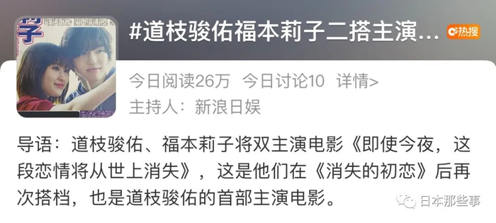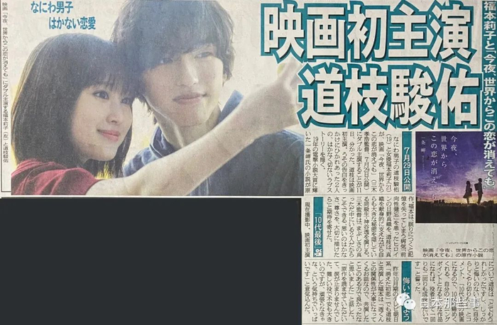 他们即将双主演电影《即使今夜,这段恋情将从世上消失》,这还是道枝弟弟的首部主演电影,也是他在10代的最后一部电影作品。