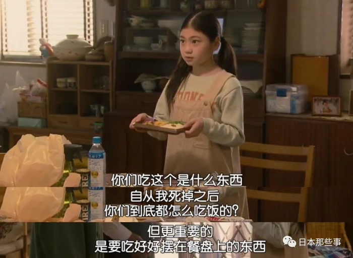 面对着家中堆积的垃圾和买回来的便当,小姑娘像家里女主人一样数落起圭介的不是。
