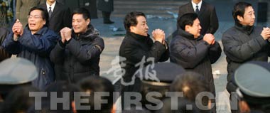 12点40分左右,悼念的队伍全部穿过灵堂。但是,很多群众还是聚集在门口不肯离去。12点52分,姜昆等马先生的弟子来到灵堂门口,向前来悼念的各界群众表示感谢。