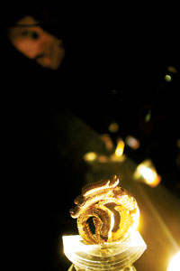 一直在电影与时尚界游走的叶锦添,12月5日在北京今日美术馆举办他的由CHOW TAI FOOK FINE JEWELLERY赞助的首次大型艺术创作个展,展览主题是《寂静·幻像》。此次他带给观众的并非是为人熟悉、令人炫目的服装系列,而是他一直以来默默创作多年的摄影作品、为了本次展览而创作的大型雕塑作品和影像装置,此外还有叶锦添专门为CHOW TAI FOOK FINE JEWELLERY设计的以龙为主题的钻石摆件“睡龙吟Dragon dreams”也在展览中呈现。