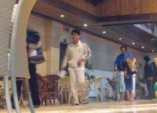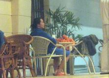 顾长卫下车走进了度假村内的温泉洗浴中心,尾随进入的记者从工作人员的口中得知,当晚蒋雯丽带着孩子和朋友们正在这里泡温泉,她是这里的常客,有会员卡,记者很快在温泉里面看见了蒋雯丽的身影,当时她正在休息,穿着一件蓝色的大浴袍,悠闲地坐在池边的藤椅上,表情轻松地看着她收养的小女儿在池中嬉戏,而顾长卫则在一旁跟服务员点菜,安排晚饭。不一会顾长卫和蒋雯丽以及几位同来的朋友走进了温泉中心的休息室,餐厅的服务员开始轮流地上菜,菜肴摆满了两张桌子,顾长卫开心地开了一瓶红酒,他和蒋雯丽隔桌而坐,笑意盎然,一起与朋友们边吃边聊,聊到尽兴时还开怀大笑。寒夜、皎月、美酒、良朋,这一切把这场周末家庭聚会的氛围烘托得和谐而愉快。本来当时记者以为当天的偷拍将以这一幕充满温情的场面结束,下面就该是“夫妻双双把家还”了,但顾长卫和蒋雯丽离开温泉中心后却各奔东西,让当天的情势急转之下,一位“不速之客”出现了。