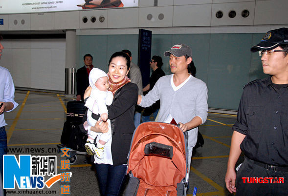 | 韩国女演员金智英与老公和宝宝一起抵港 |