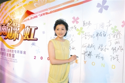 信报讯(记者王大鸣)杨澜创办的阳光文化基金会昨晚与中国儿童少年基金会合作,在京举办“风雨之后见彩虹‘汶川大地震孤残儿童救助专项基金’慈善答谢晚宴”。吴征、杨澜夫妇捐出个人珍藏的两幅吴冠中亲笔签名版画。