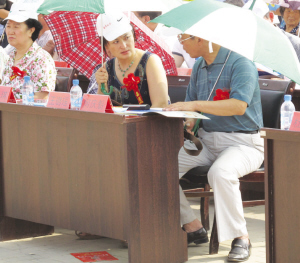 记者在现场注意到,在活动进行过程中,何庆魁和王璐瑶挨坐在一起观看当地民俗表演,两人分别打着伞,在烈日下坐了一个多小时,兴致一直不减。