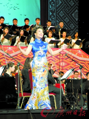 广州日报:感觉您的唱法是民族融合美声,请您具体谈谈。相同的歌曲,比如《浏阳河》、《绒花》,很多人都唱过,您也唱过,您是怎么演绎的?有没有加一些特色处理?