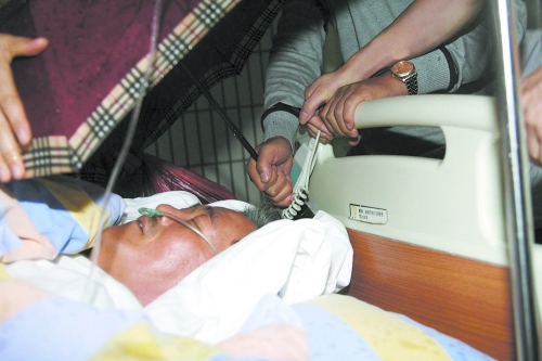 现场一 赵本山面部发肿 鼻部插有氧气管