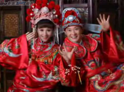 记者在曹颖和王斑的博客上看到,两人几乎同一时间,在圣诞前夜上传婚纱照视频,前后只相差2分钟。视频一开始便用彩色字体打出“DODO曹颖那一天……”的文字,随后便是曹颖和王斑的数十张唯美婚纱照。在视频中,曹颖先后更换了三套服装,从圣洁的白色婚纱到古典的红色中国风礼服,幸福甜蜜的表情溢于言表。