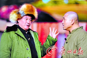 前晚,赵本山戴着狗皮帽子、穿着军大衣,他一上场,就引来全场一阵笑声。在《捐款风波》中,赵本山的徒弟王小利和孙立荣得到了师傅的眷顾,同时出演的还有辽宁台的主持人于洋。在这个阴错阳差的捐钱故事里,于洋本色出演一名电视台的记者,孙立荣则扮演被捐助的孩子的母亲,赵本山和王小利是整部作品的主线,戏外是师徒,戏里是亲家。