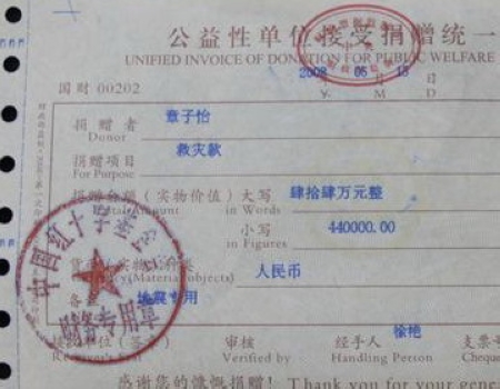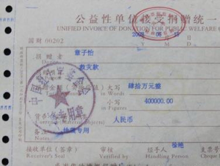 在08年地震发生后,北京的同事接到子怡捐一百万的指示后,他们分别给红十字会捐了两笔钱。我们当时都不在国内,我也没盯这事。但在最近两个星期看到媒体报道说捐款总数没有达到100万,我便开始调查此事。当我寻找捐款收据时,才发现一直没有。今天红十字会告诉我,捐款的收据一直在红十字会那边,因为他们没有寄出收据的地址。当我了解到收据细节时,才确认了善款只有84万。同时再了解到当时会计和另一个同事她们在各自汇出金额上出现了纰漏,都以为对方汇出了差额。