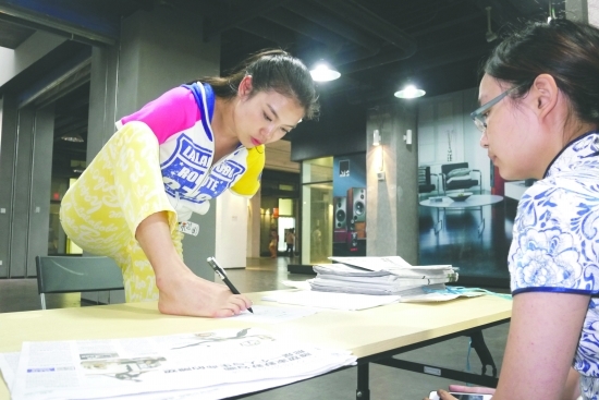 今天和明天是“我与你相遇·雕塑在成都———2012成都雕塑季”大型活动现场报名的最后两天。在此前的三天里,雕塑家们已经与许多有故事、有内涵的报名者不断“相遇”,昨天的报名现场更是惊喜地迎来了“断臂天使”雷庆瑶。她用右脚在报名表上娴熟地写下一行行漂亮的钢笔字,折服了所有的旁观者,负责面试的两位雕塑家更是对雷庆瑶赞赏有加,甚至有意邀请她一同参与雕塑创作!